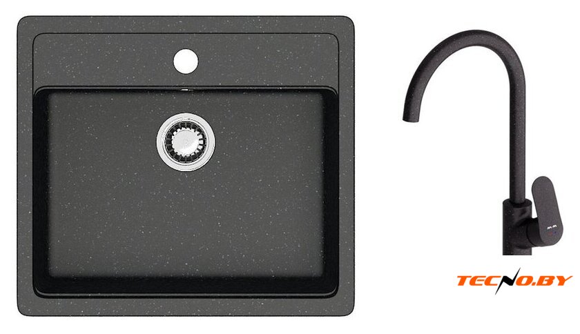 Комплектация | Мойка кухонная Berge BR-5750 (черный), Смеситель AM.PM Like F8007122 |