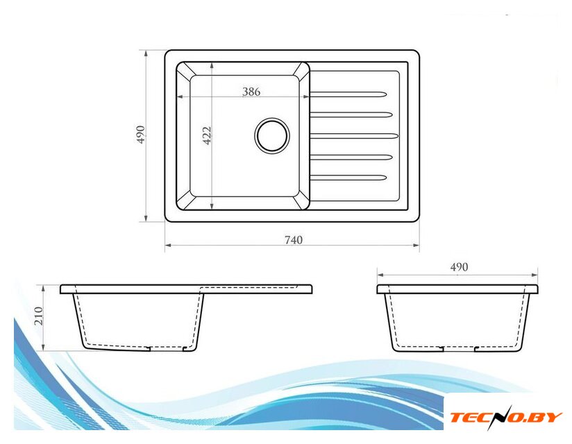 врезная на столешницу, искусственный камень, размеры: 47x50 см, глубина чаши: 20 см, в шкаф шириной от 45 см