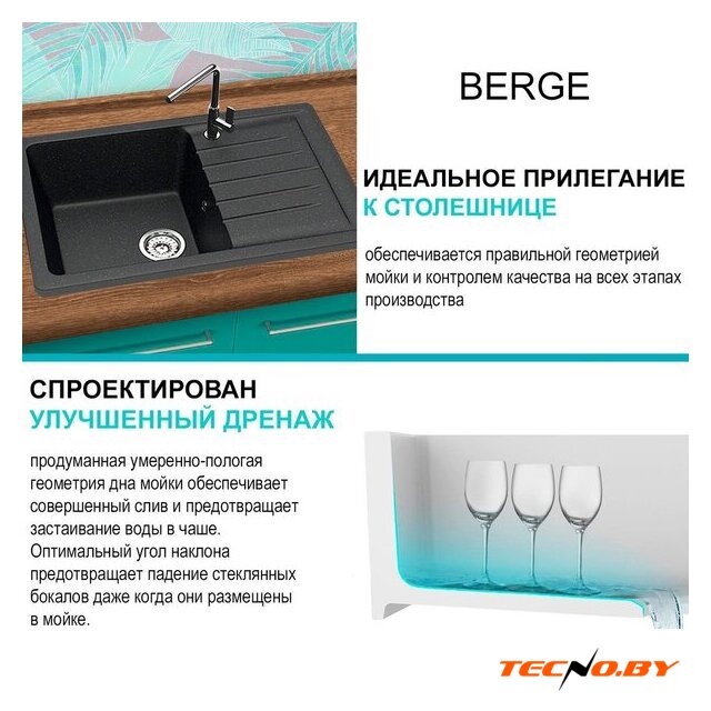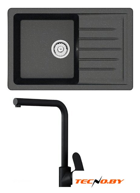 Комплектация | Мойка кухонная Berge BR-7602 (черный), Смеситель AM.PM Like F8005022 |