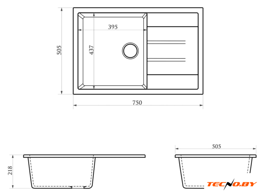 врезная на столешницу, искусственный камень, размеры: 75x50.5 см, в шкаф 50 см