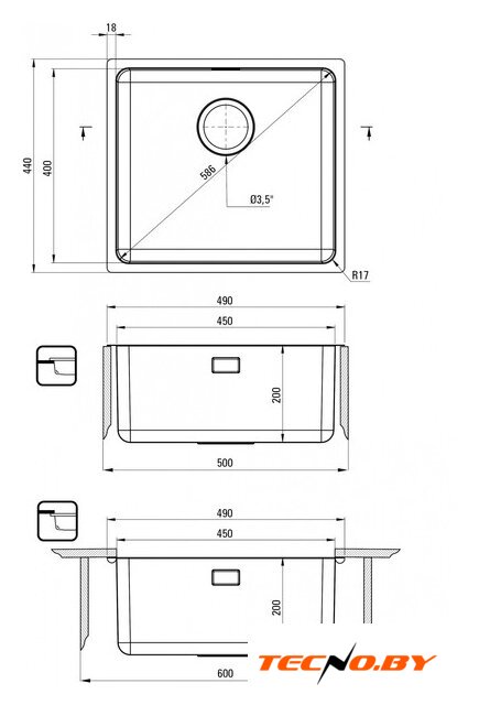 врезная на столешницу/врезная под столешницу, нержавеющая сталь, фактура: матовая, размеры: 45x44 см, глубина чаши: 20 см, в шкаф шириной от 50 см