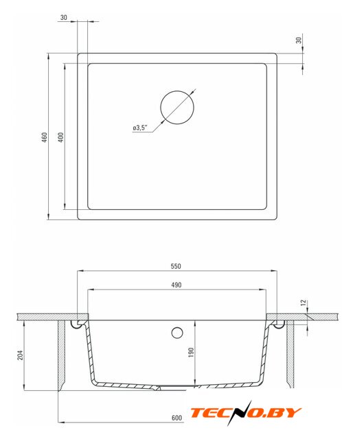 врезная на столешницу, искусственный камень, размеры: 57x50 см, глубина чаши: 22 см, в шкаф шириной от 60 см