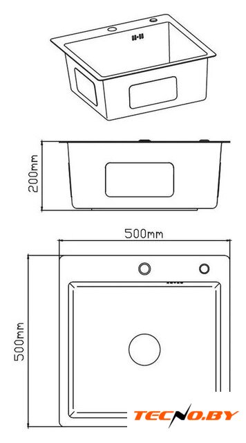 врезная на столешницу/врезная вровень со столешницей, нержавеющая сталь, фактура: сатин, размеры: 50x44 см, глубина чаши: 22 см, в шкаф шириной от 50 см