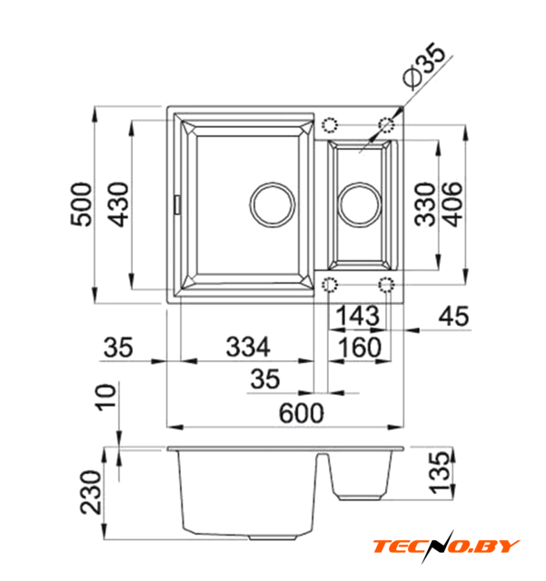 врезная на столешницу, искусственный камень, размеры: 60x50 см, в шкаф 60 см