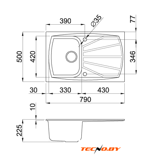 врезная на столешницу, искусственный камень, размеры: 79x50 см, глубина чаши: 22.5 см, в шкаф шириной от 45 см