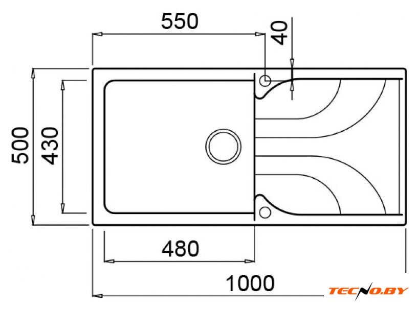 врезная на столешницу, нержавеющая сталь, фактура: матовая, размеры: 55x50.5 см, глубина чаши: 20 см