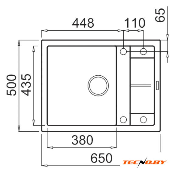 врезная на столешницу, искусственный камень, размеры: 65x50 см, глубина чаши: 20 см, в шкаф шириной от 50 см