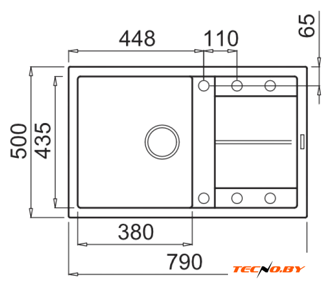 врезная под столешницу, кварц, размеры: 73x45 см, глубина чаши: 22 см, в шкаф шириной от 80 см