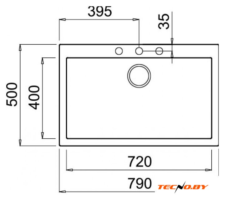 врезная на столешницу, искусственный камень, размеры: 57x50 см, глубина чаши: 23.7 см, в шкаф шириной от 60 см