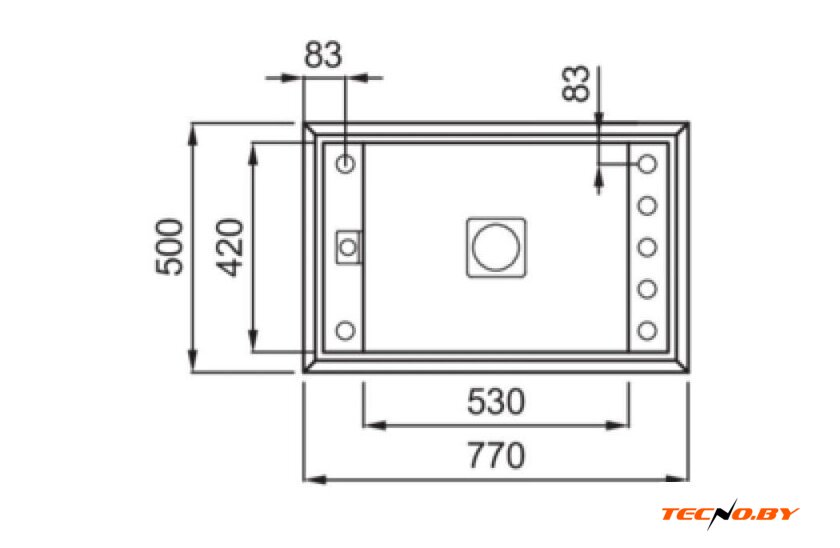 врезная под столешницу, кварц, фактура: матовая, размеры: 55x45 см, глубина чаши: 22 см, в шкаф шириной от 60 см