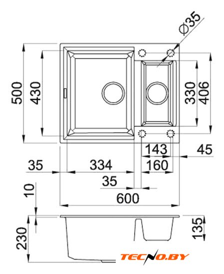 врезная на столешницу, искусственный камень, размеры: 60x50 см, глубина чаши: 23 см, в шкаф шириной от 60 см