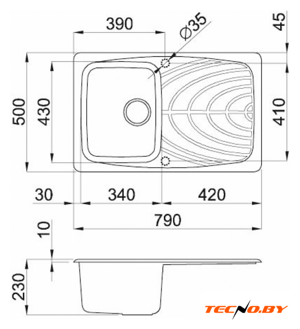 врезная на столешницу, искусственный камень, размеры: 79x50 см, в шкаф 80 см