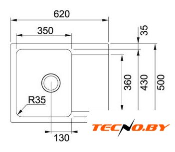врезная на столешницу, искусственный камень, размеры: 44x42 см, глубина чаши: 20 см, в шкаф шириной от 50 см