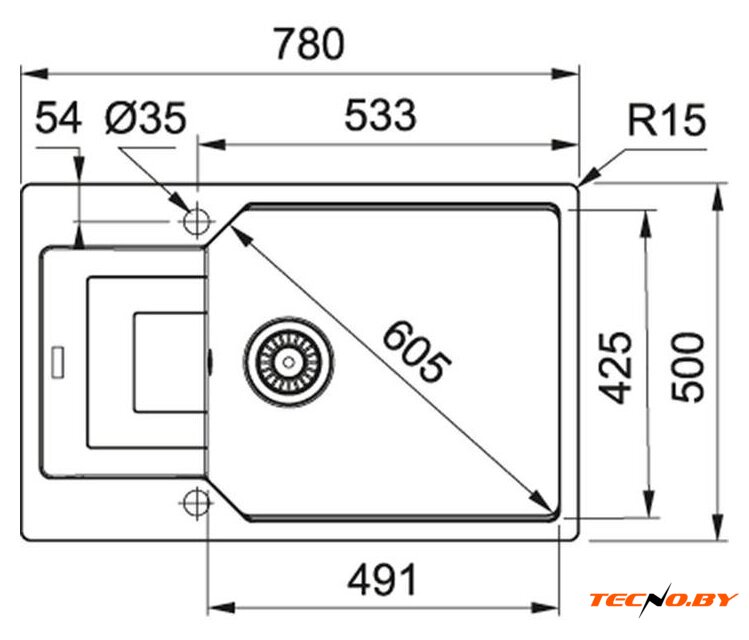 врезная на столешницу, нержавеющая сталь, фактура: матовая, размеры: 51x50 см, глубина чаши: 23.5 см, в шкаф шириной от 60 см