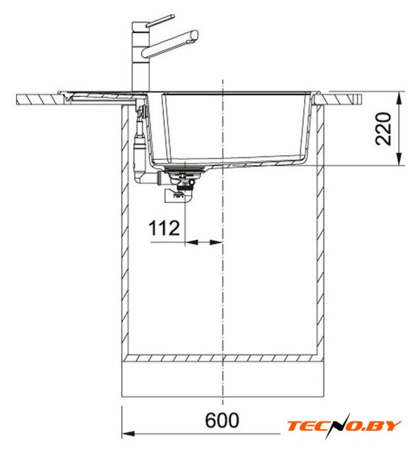 врезная на столешницу, искусственный камень, размеры: 100x51.5 см, глубина чаши: 21 см, в шкаф шириной от 60 см