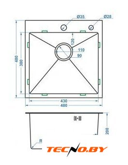врезная под столешницу, нержавеющая сталь, фактура: сатин, размеры: 50x50 см, глубина чаши: 20 см, в шкаф шириной от 50 см