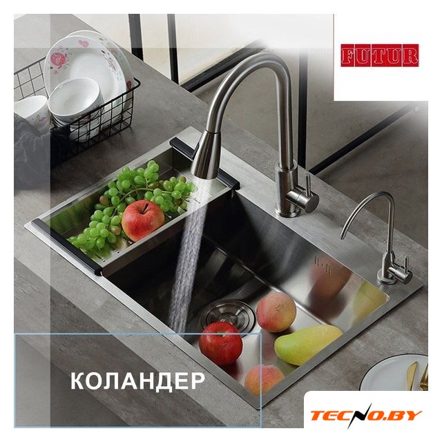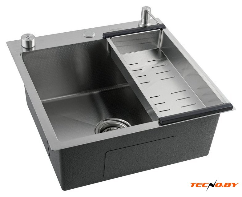 | Комплектация | Полуавтоматический сифон Pop up, коландер(Сатин), гофра, дозатор для моющего средства(Сатин), мойка(Сатин), Смеситель |