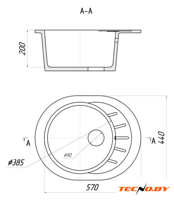 врезная на столешницу, искусственный камень, размеры: 51x55.5 см, глубина чаши: 19 см, в шкаф шириной от 60 см