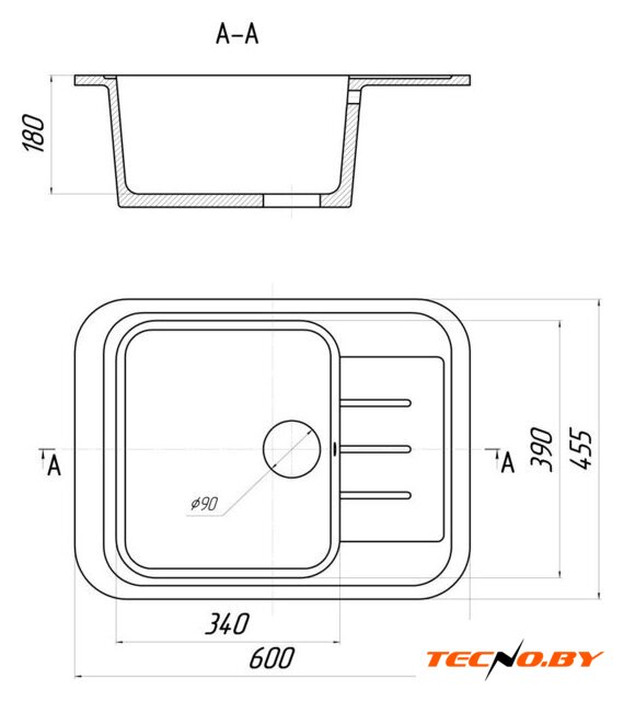 врезная на столешницу, искусственный камень, размеры: 77x47.5 см, глубина чаши: 21 см, в шкаф шириной от 50 см