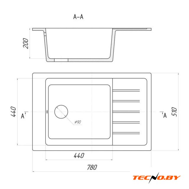 врезная на столешницу, искусственный камень, размеры: 74.5x46.5 см, глубина чаши: 17.5 см, в шкаф шириной от 50 см