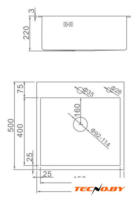 врезная на столешницу, нержавеющая сталь, фактура: матовая, размеры: 50x50 см, глубина чаши: 21 см