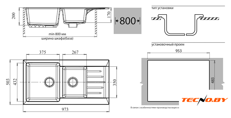 врезная на столешницу, искусственный камень, размеры: 97.3x50.3 см, в шкаф 80 см