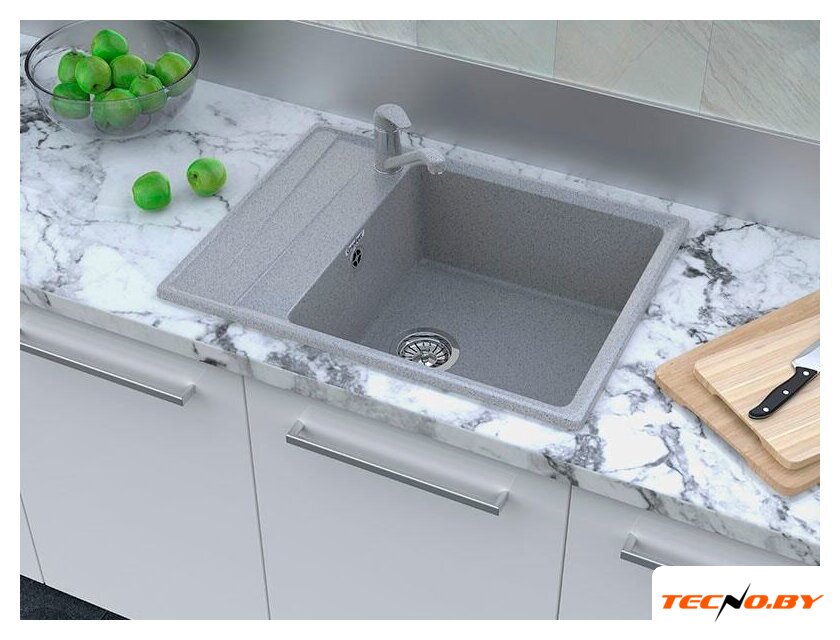 врезная под столешницу, кварц, фактура: матовая, размеры: 48.5x60.5 см, глубина чаши: 18 см, в шкаф шириной от 60 см