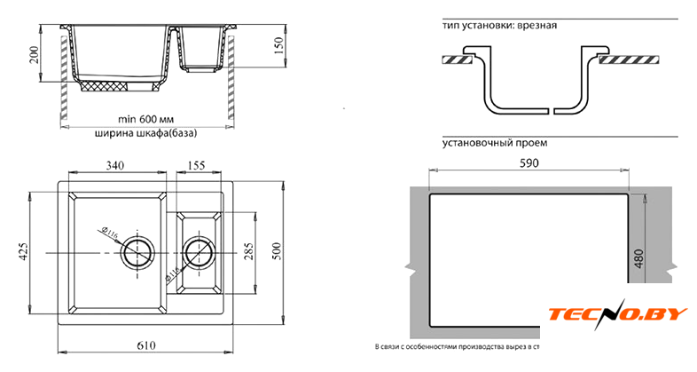 врезная на столешницу, искусственный камень, размеры: 48.5x59.5 см, глубина чаши: 19.5 см