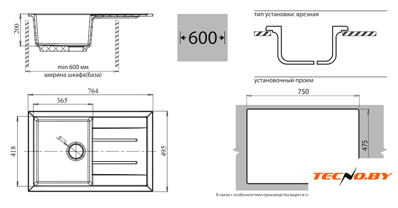 | Способ установки | врезная на столешницу |