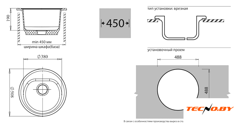 врезная на столешницу, искусственный камень, размеры: 46x50 см, глубина чаши: 19 см, в шкаф шириной от 45 см