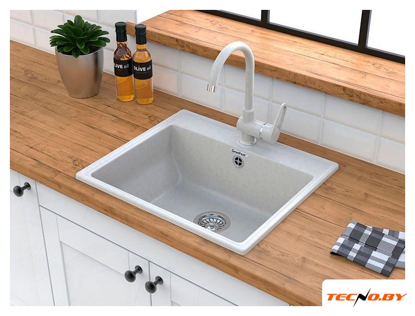 врезная под столешницу, кварц, фактура: матовая, размеры: 48.5x48.5 см, глубина чаши: 18 см, в шкаф шириной от 45 см