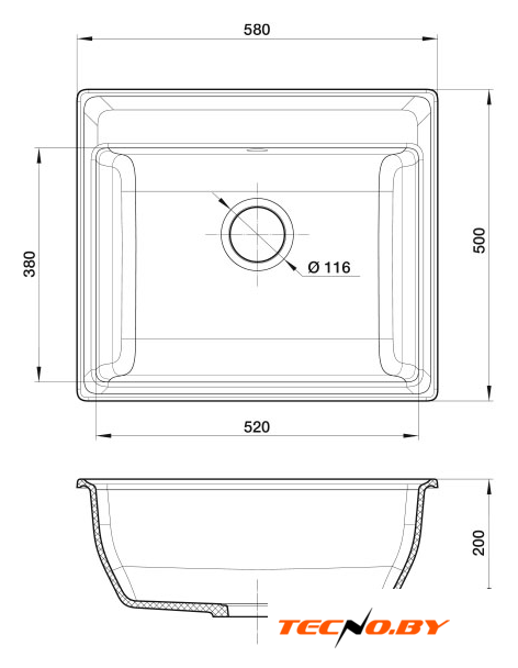 врезная на столешницу, искусственный камень, размеры: 58x50 см, в шкаф 60 см