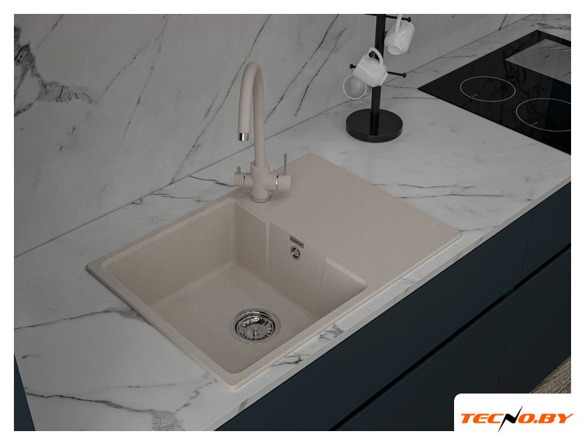 врезная на столешницу, искусственный камень, фактура: матовая, размеры: 50x58 см, глубина чаши: 20 см, в шкаф шириной от 60 см