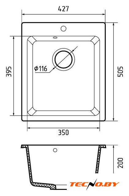 врезная на столешницу, гранит, фактура: матовая, размеры: 41.5x49 см, глубина чаши: 19.5 см, в шкаф шириной от 40 см