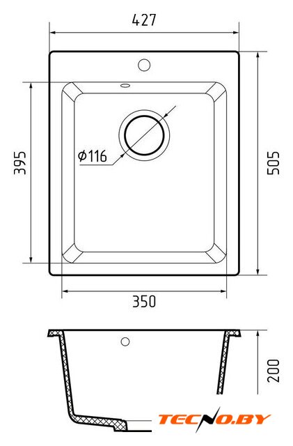 врезная на столешницу, кварц, размеры: 58x50 см, глубина чаши: 20 см, в шкаф шириной от 45 см