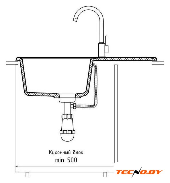 врезная на столешницу, искусственный камень, размеры: 44.5x50 см, глубина чаши: 19 см, в шкаф шириной от 50 см