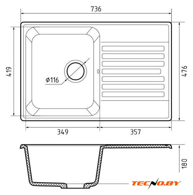 врезная на столешницу, нержавеющая сталь, фактура: сатин, размеры: 60x47 см, глубина чаши: 18 см, в шкаф шириной от 50 см