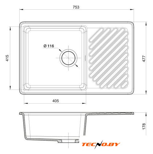 врезная на столешницу, искусственный камень, размеры: 79x49 см, глубина чаши: 20 см, в шкаф шириной от 60 см