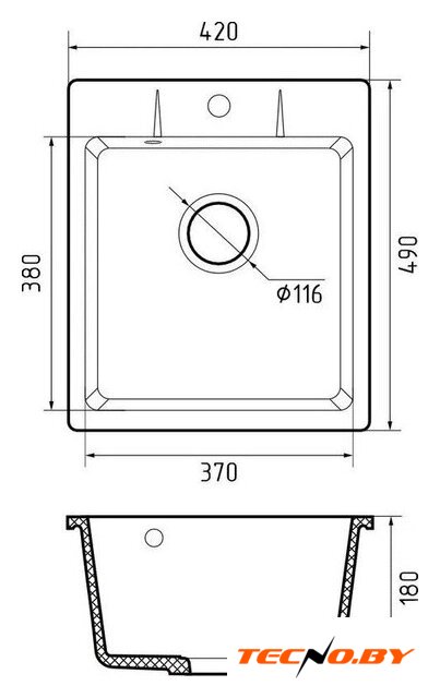 врезная на столешницу, искусственный камень, размеры: 49x42 см, глубина чаши: 18 см, в шкаф шириной от 45 см, клапан-автомат