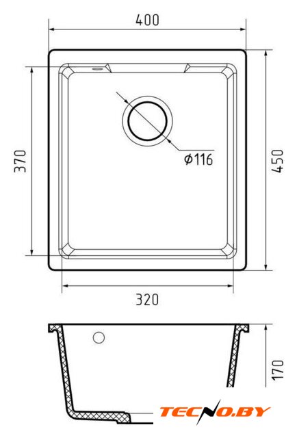 врезная на столешницу, нержавеющая сталь, фактура: с текстурой, размеры: 60x48 см, глубина чаши: 22 см