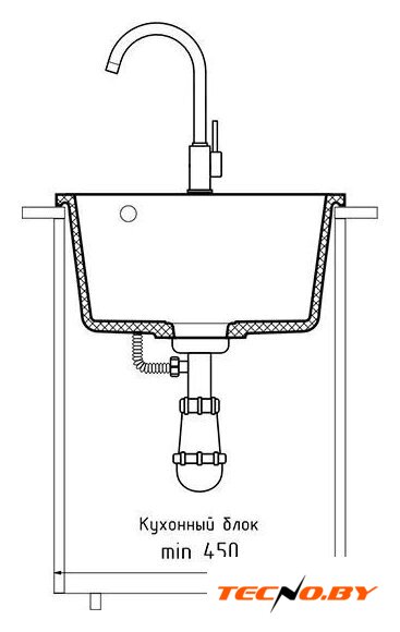 врезная на столешницу, искусственный камень, размеры: 44x49 см, в шкаф 45 см