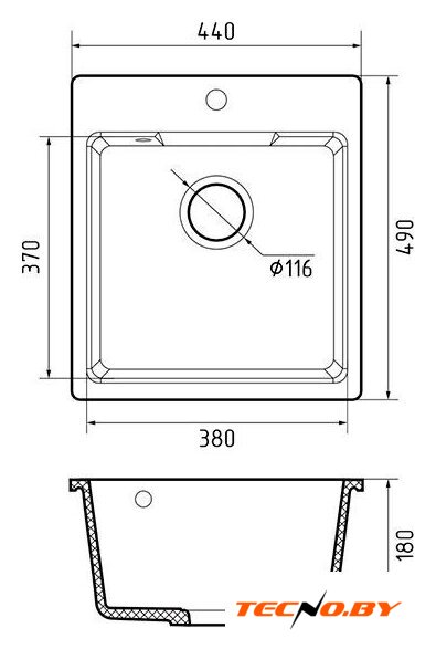 врезная на столешницу, искусственный камень, размеры: 44x49 см, в шкаф 45 см