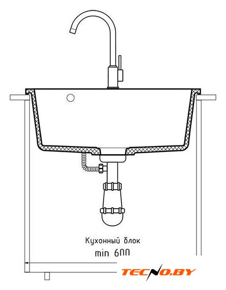 врезная на столешницу, искусственный камень, размеры: 60x50 см, глубина чаши: 20 см, в шкаф шириной от 50 см
