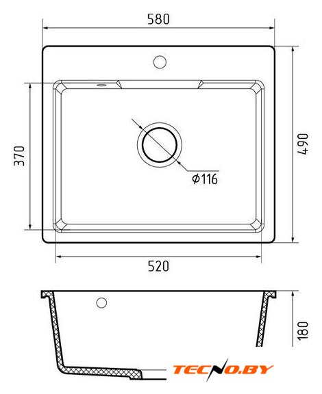 врезная на столешницу, искусственный камень, размеры: 58x49 см, в шкаф 60 см