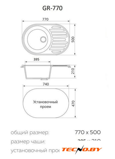врезная на столешницу, искусственный камень, размеры: 77x50 см, в шкаф 45 см