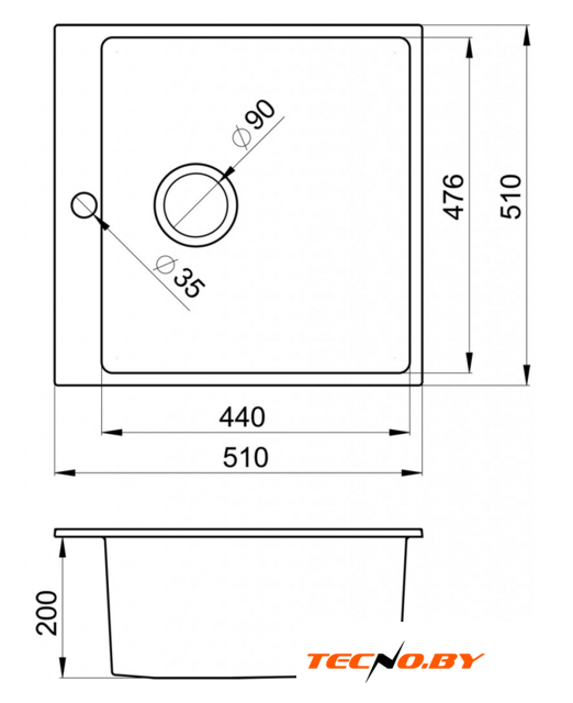 врезная на столешницу, нержавеющая сталь, фактура: с текстурой, размеры: 50x50 см, глубина чаши: 20 см, в шкаф шириной от 50 см