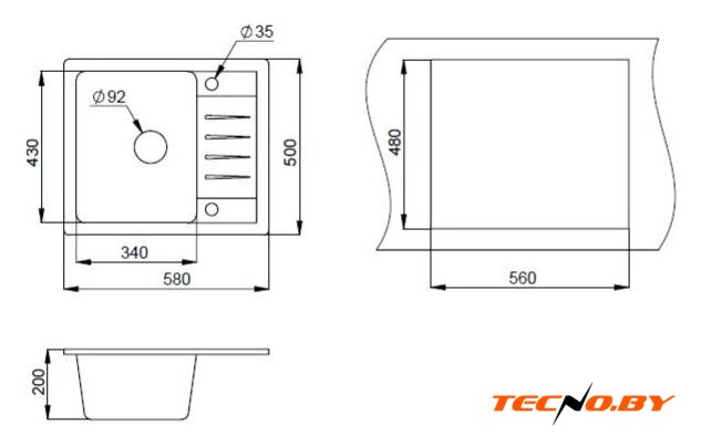 врезная на столешницу, нержавеющая сталь, фактура: матовая, размеры: 60x50 см, глубина чаши: 20 см, в шкаф шириной от 60 см