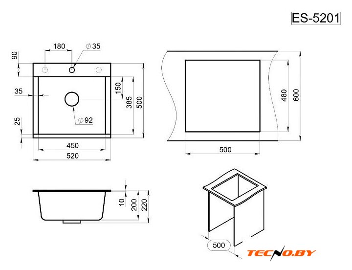 врезная на столешницу, нержавеющая сталь, фактура: матовая, размеры: 51x51 см, глубина чаши: 18 см