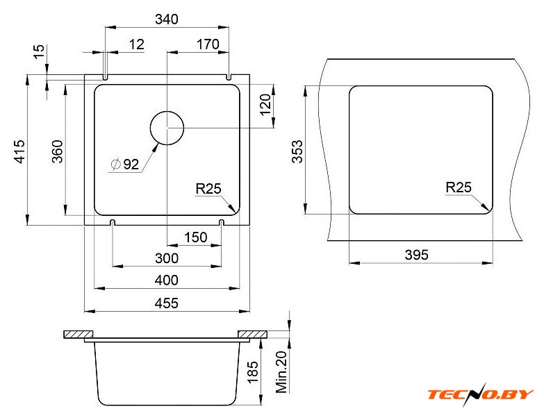 врезная на столешницу, искусственный камень, размеры: 45x45 см, глубина чаши: 20 см, в шкаф шириной от 50 см