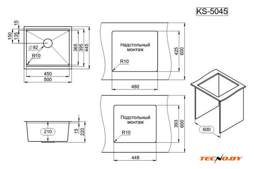 Способ установки | врезная на столешницу, врезная под столешницу |